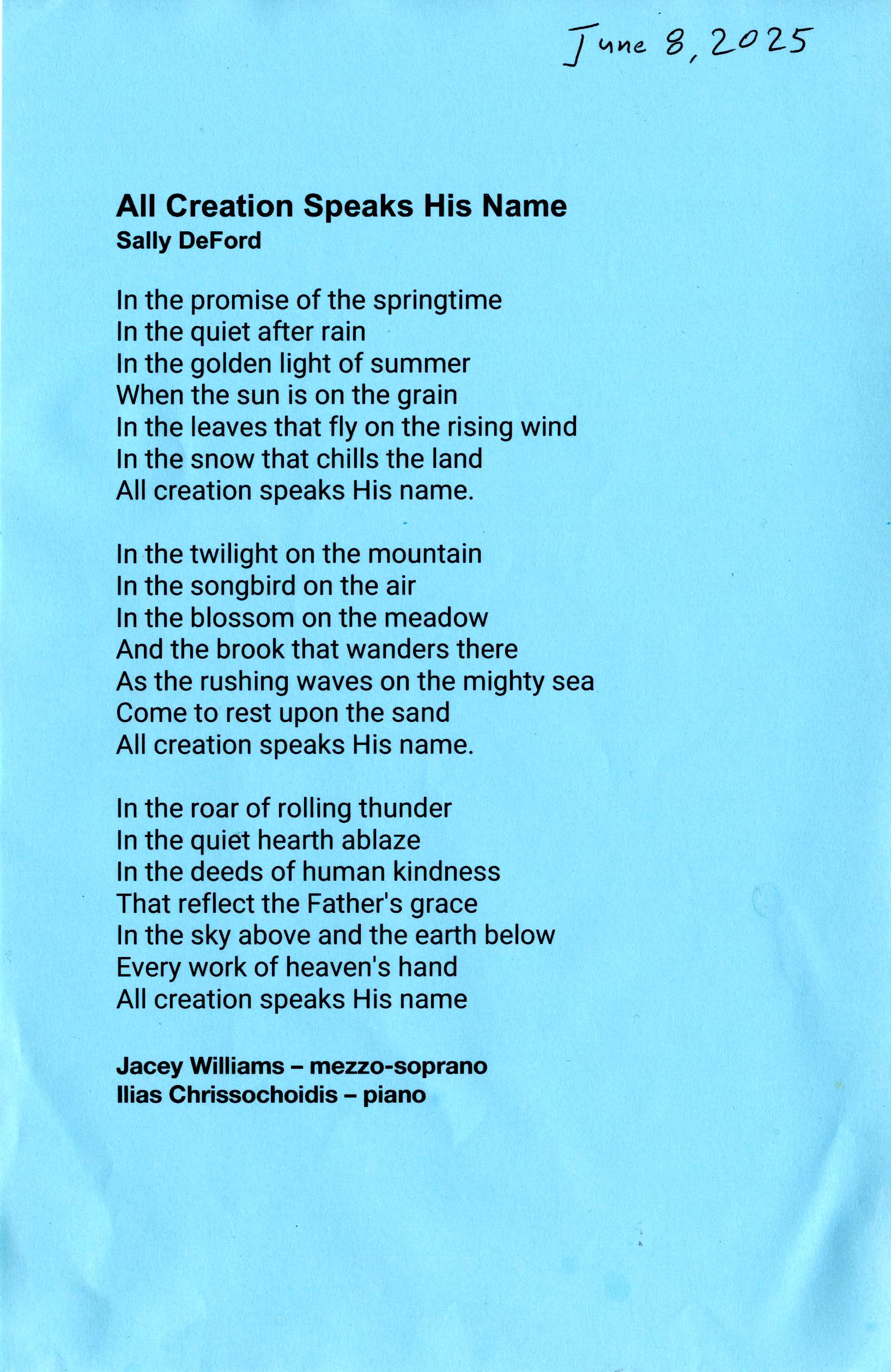 performances of short repertory works and original compositions)